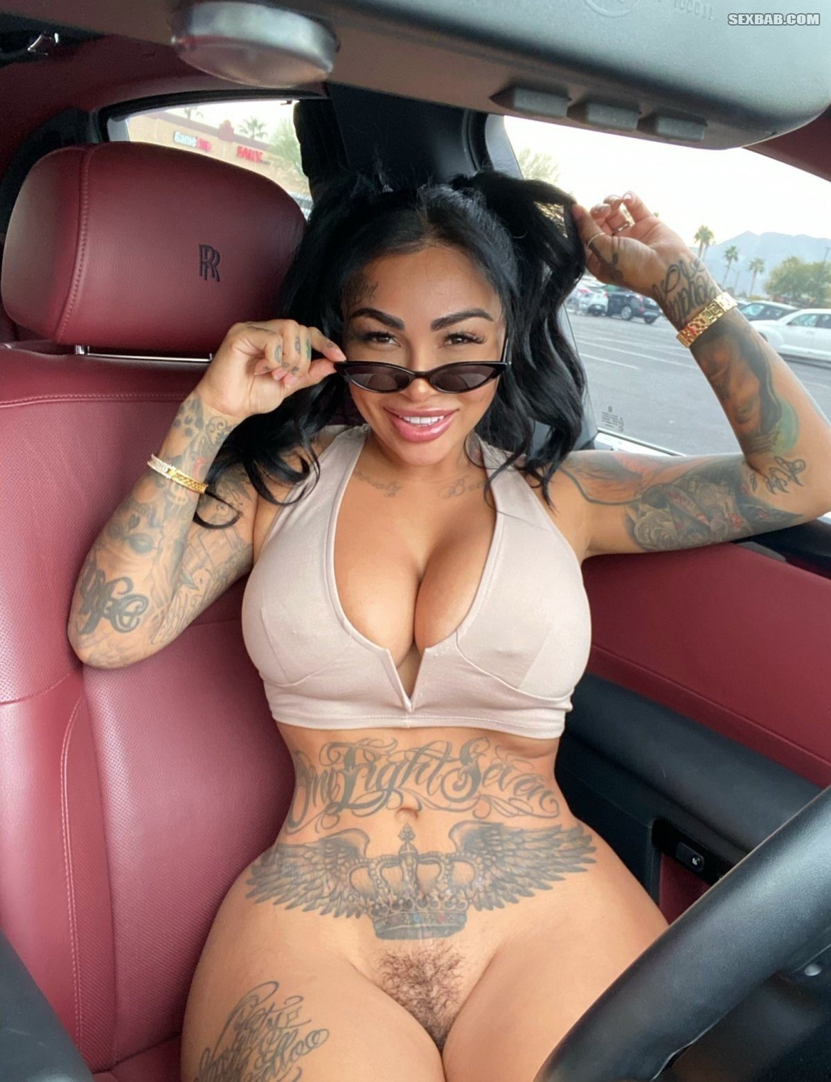 Селфи сисястой латинки с татуировкой на волосатом лобке (15 фото)