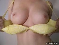 Худая блондинка приспустила белые трусики и задрала майку оголив грудь