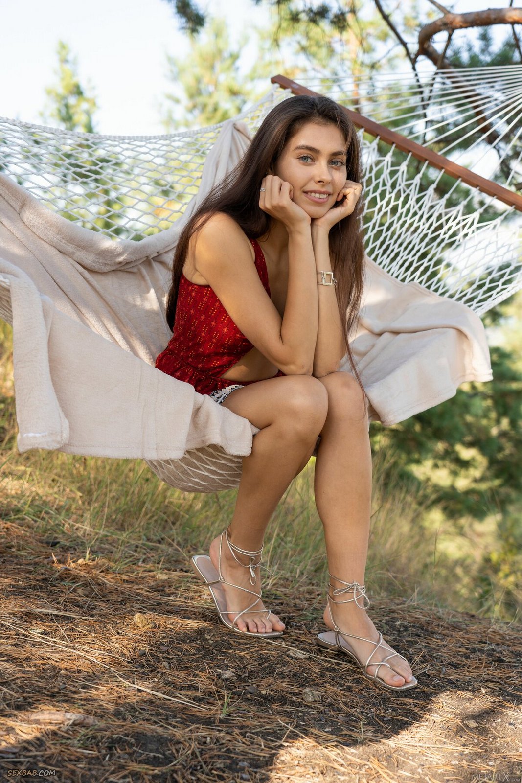 Описание: Развалившись в гамаке с широко раздвинутыми ножками, горячая распутная девка игриво сдвинула в сторону трусики и вовсю дрочит пальцами свою волосатую пизду прямо на природе. Постепенно раздевшись до гола, возбужденная сучка с натуральными титьками нетерпеливо извивается всем телом перед камерой и с разных возбуждающих ракурсов хвастается своими аппетитными прелестями.