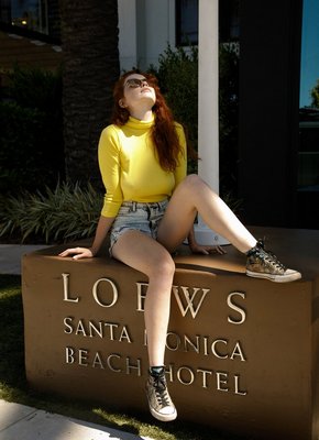 Описание: Прогуливаясь на улице и ощущая возбуждение, рыжая сексуальная студентка в очках и коротких джинсовых шортах старательно чередует разные позиции. В те моменты когда молодая девушка присаживалась на корточки и раздвигала промежность можно было рассмотреть упругие ляжки.