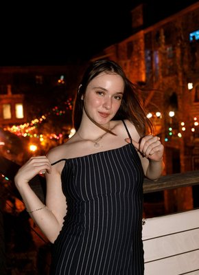 Описание: Молоденькая и довольно раскрепощенная, не скованная комплексами девушка с привлекательной внешностью игриво позирует на вечерней прогулке и засвечивает там свои чёрные трусики. При это улыбаясь и строя глазки, сексуальная красавица испытывала массу волнующих её чувств и в процессе так же оголяла натуральные упругие сиськи.