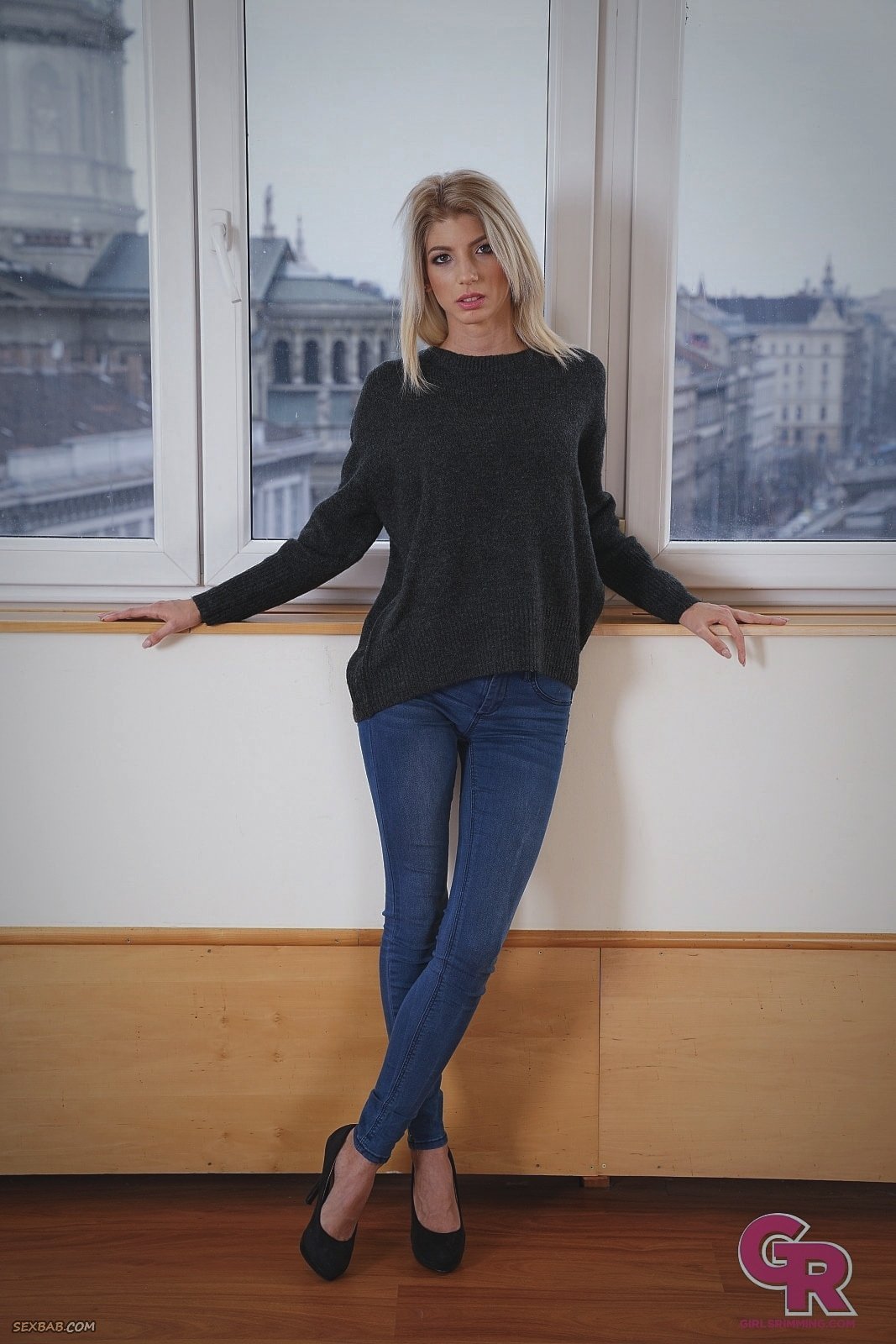 Описание: Соблазнительно стягивая с себя всю одежду, тощая девка с маленькими сиськами постепенно разделась до гола, оголив перед камерой свои скромные прелести. Развратная блондинка возбуждающе позирует всем телом, откровенно демонстрируя нам свою голую бритую промежность с сочной влажной киской.