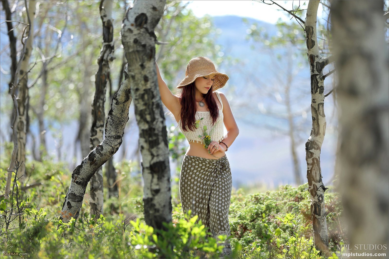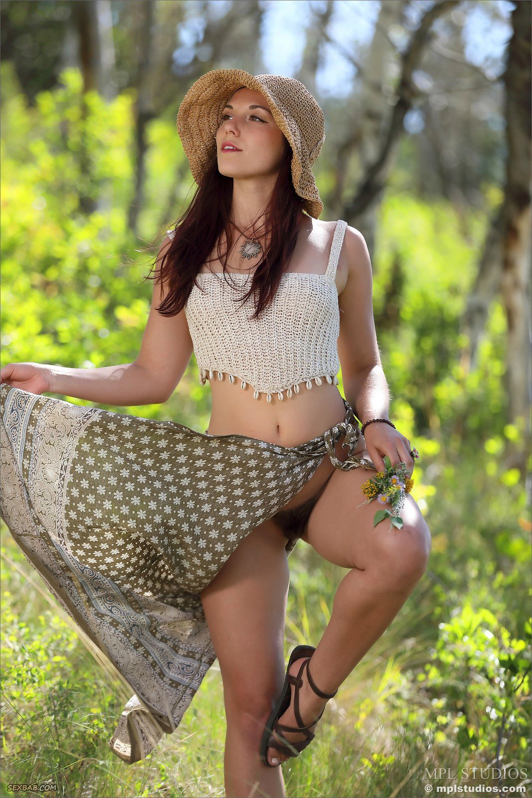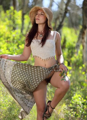 Описание: Прогуливаясь в лесу, очаровательная милая девушка игриво распахнула свою длинную легкую юбку и засветила перед камерой волосатую пизду. Молодая детка с маленькими титечками эротично принимает разные возбуждающие позы, развратно выпячивая свою красивую упругую попку.