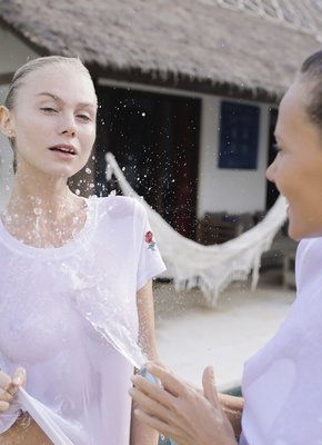Сексуальные милашки в мокрых футболках