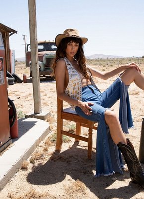 Описание: Горячая телка в ковбойской шляпе и одежде работает на заправке в жаркий знойный день. Раздевшись до гола, жгучая брюнетка с красивыми натуральными сиськами страстно позирует перед камерой, во всей красе показывая свое стройное загорелое тело с упругой попкой, но все же прикрывая от чужих глаз самые интимные места.