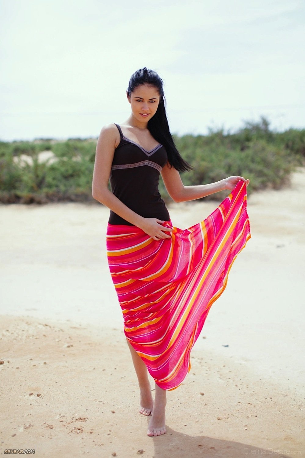 Описание: Молодая стройная брюнетка с красивой упругой грудью принимается зажигательно позировать на пляже, прикрываясь большим платком и милой улыбаясь в камеру. Наслаждаясь прекрасным солнечным деньком, сексуальная девушка пребывала в прекрасном настроении и охотно позволила нам взглянуть на её желанную киску вместе с красивой попкой.