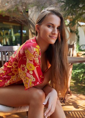Описание: Устроившись на стуле, молодая длинноногая красотка мило кривляясь перед камерой обольстительно позирует и скидывает с себя лёгкое платье. Раздвигая промежность сексуальная девушка с небольшой грудью и торчащими сосками демонстрирует бритую письку, а прогибаясь раком оттопыривает сочную задницу.