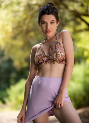 Описание: Страстно извиваясь перед камерой на фоне природы и постепенно стягивая с себя одежду, сексуальная тётка с голыми упругими сиськами кокетливо приподняла свою короткую юбку без трусов возбуждающе показала нам свой волосатый темный лобок и бритую маленькую пиздёнку между ног.
