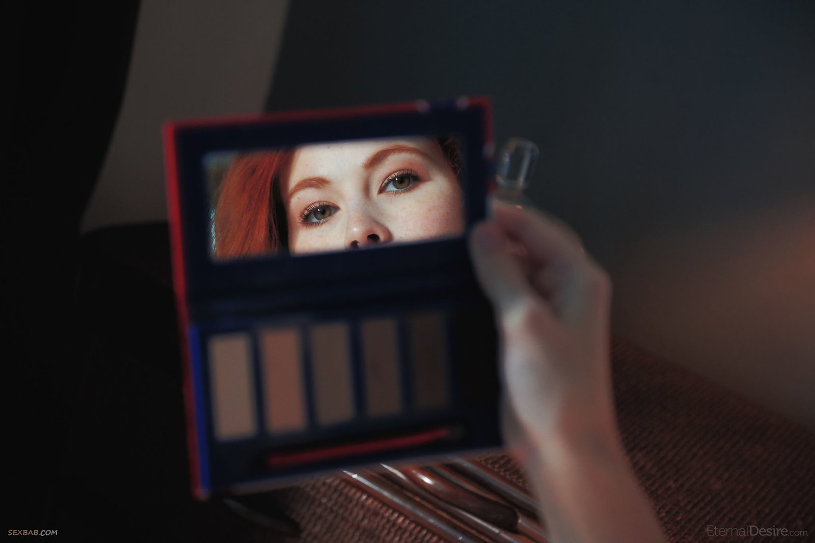 Описание: Устроившись на кровати, молодая рыжач девушка в колготках без нижнего белья, в какой-то момент и вовсе раздевается догола и раздвигая промежность, поднимая ножки вверх, нежно ласкает гладко выбритую письку крупным планом. При этом, девушка совершенно не смущается фотографа, который жадно поедает красавицу восхищённым взглядом..
