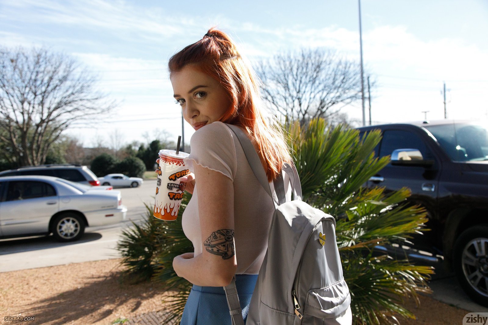 Описание: Надев наиболее короткую юбку и футболку, под которой не было лифчика, молодая рыжая шалунья отправляется на прогулку по городу. Наслаждаясь и даже немного возбуждаясь от происходящего, сексуальная стройняшка порой страстно сжимала натуральные сиськи с набрякшими сосками через одежду, а задирая подол показывала трусики.