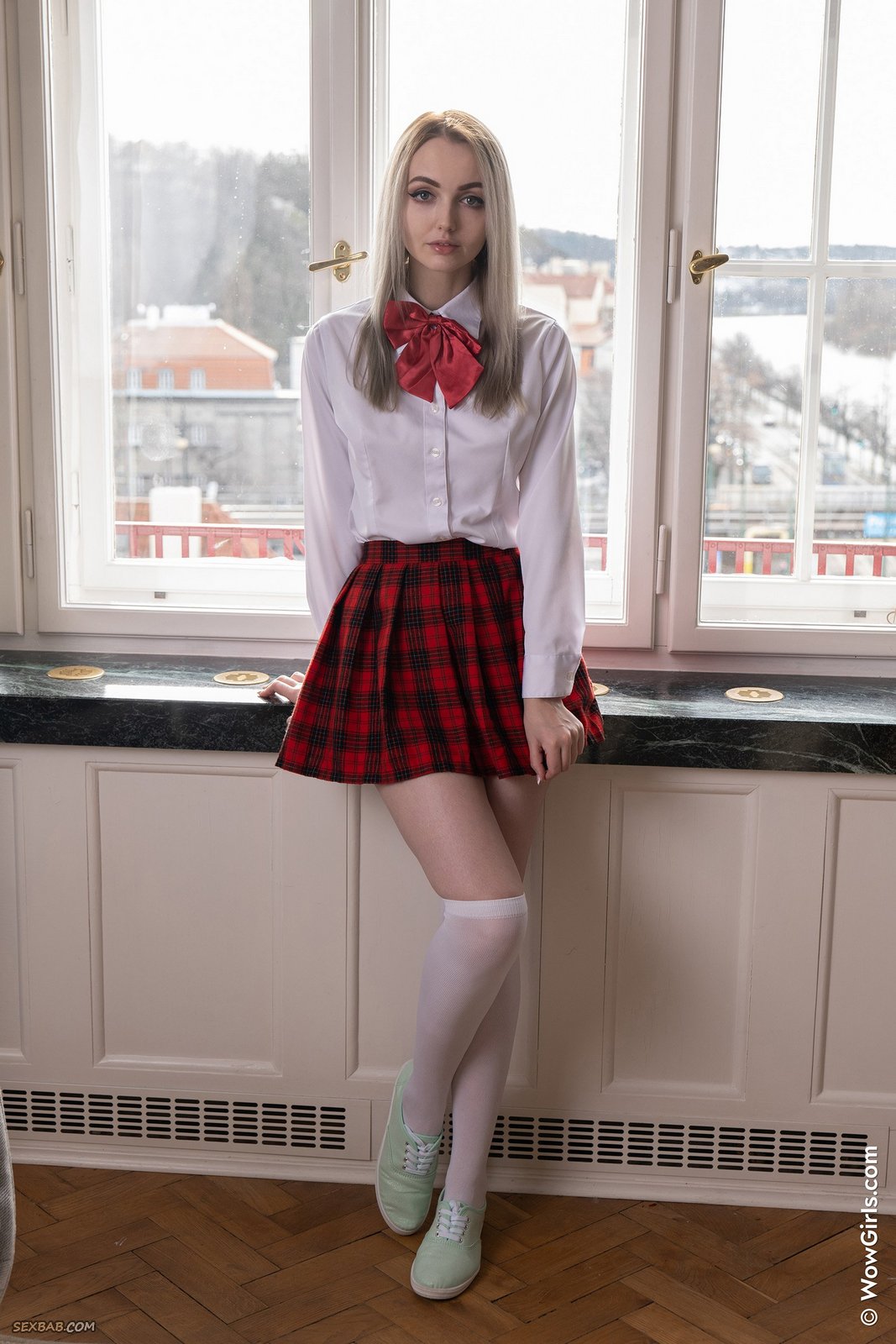 Описание: Скромная девица в короткой юбке засветила свои белые трусы на камеру, а затем постепенно вошла во вкус и начала эротично раздеваться до гола. Обнаженная блондинка с удовольствием продемонстрировала свои упругие натуральные сиськи и ладную аппетитную попку, которую может оценить каждый желающий.