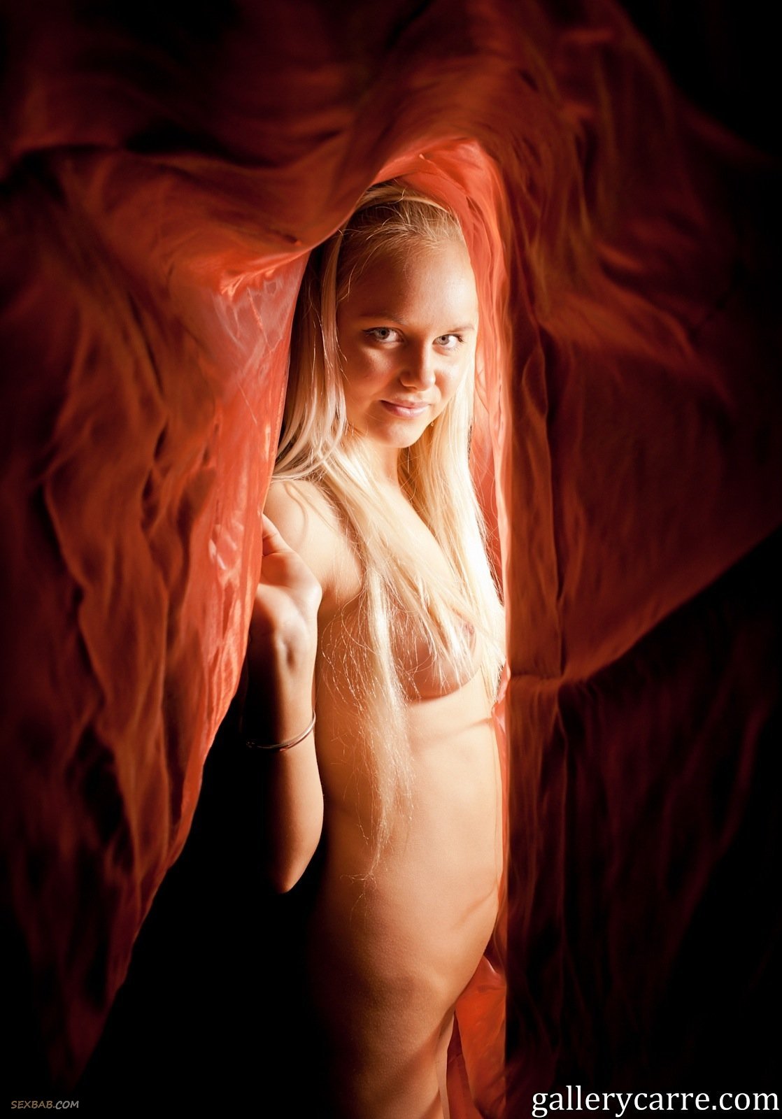 Описание: Расположившись под яркой тканью, молодая и полностью голая блондинка устраивает эротичную ню фото сессию, чередуя разные позиции и ощущая удовольствие. В процессе сексуальная девушка с натуральными сиськами показывала гладенькую бритую письку с лобком.