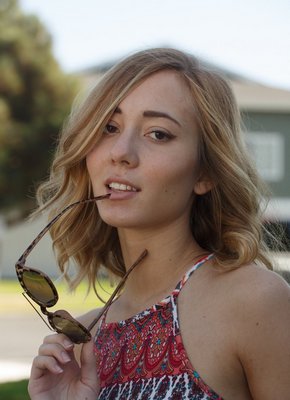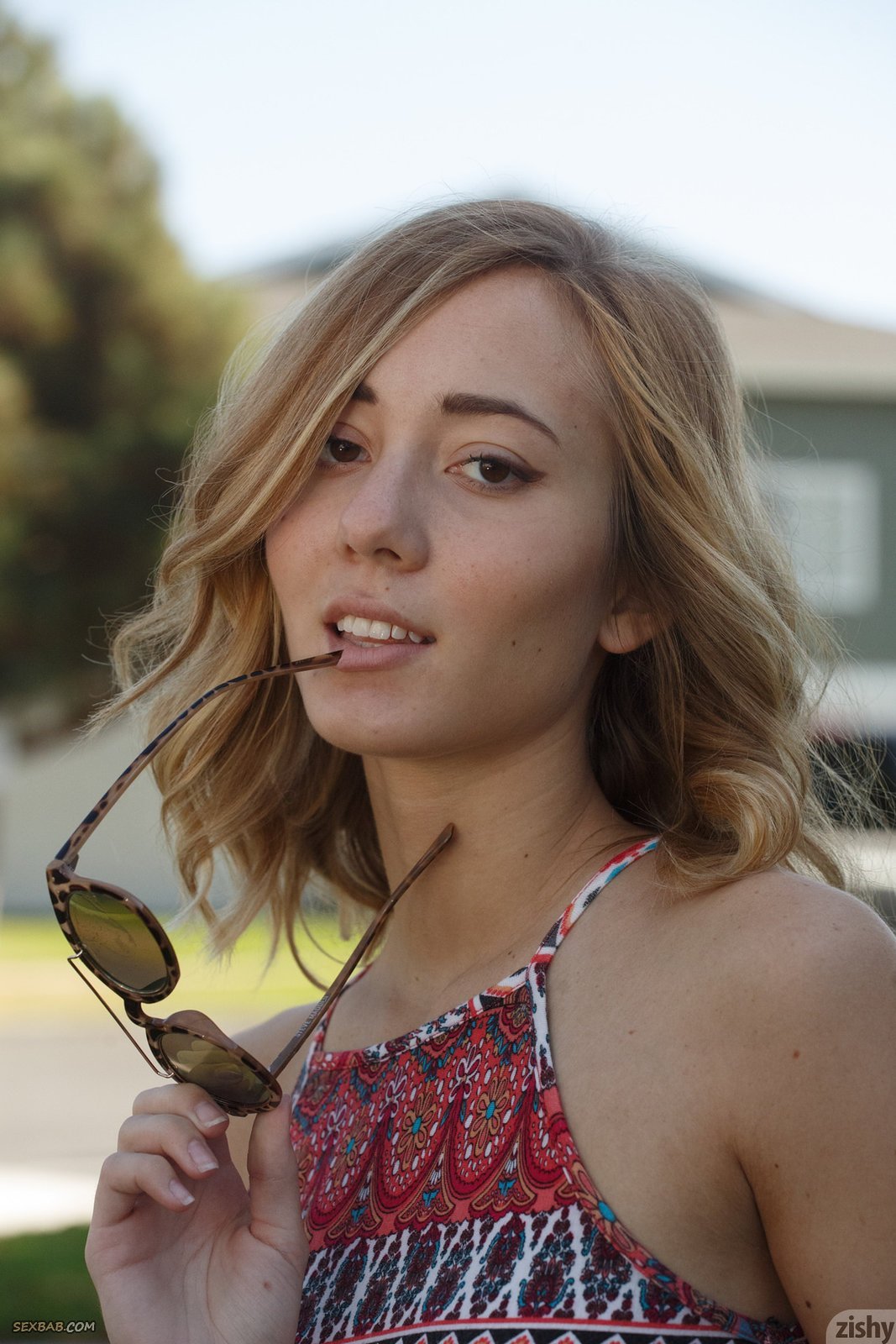 Описание: Привлекательная раскрепощенная девушка со стройной фигурой и светлыми локонами, нарядившись в красочный наряд, начала эротично позировать на улице и в кафе, в будущем немного оголяясь и подробно показывая упругие ягодицы. В процессе страстная крошка ощущала удовольствие и даже немного возбуждалась от происходящего.
