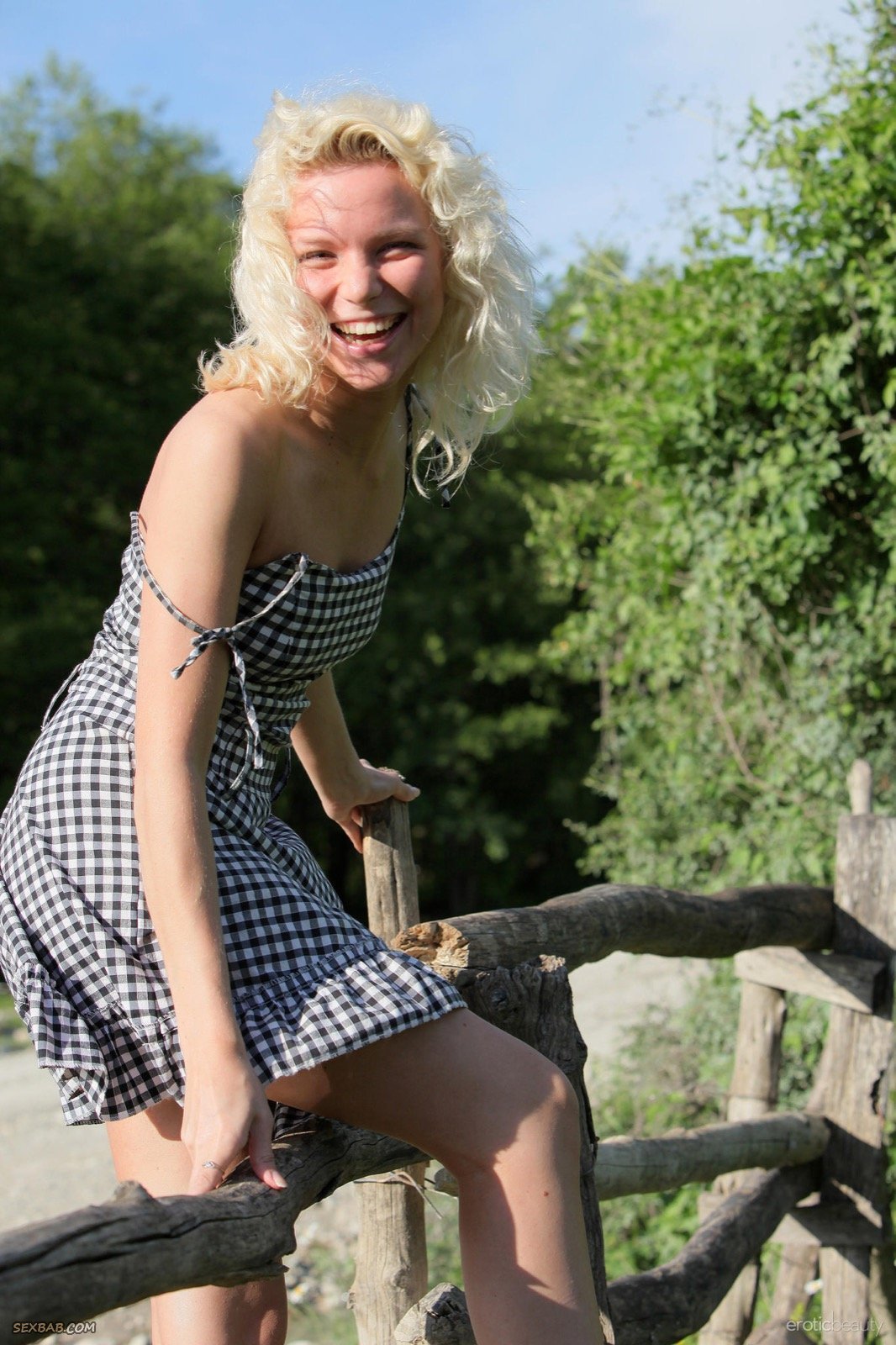 Описание: Жизнерадостная блондинка отдыхает в деревне у родственников, а выбравшись в поле неподалёку от посёлка, она показала свою голую бритую письку местному трактористу который с радостью запечатлел всё это на фотокамеру. Стройная девушка очень быстро сняла платье под которым у неё не оказалось трусиков и устроившись в траве с ромашками откровенно позирует перед своим новым другом, любителем женской натуры...