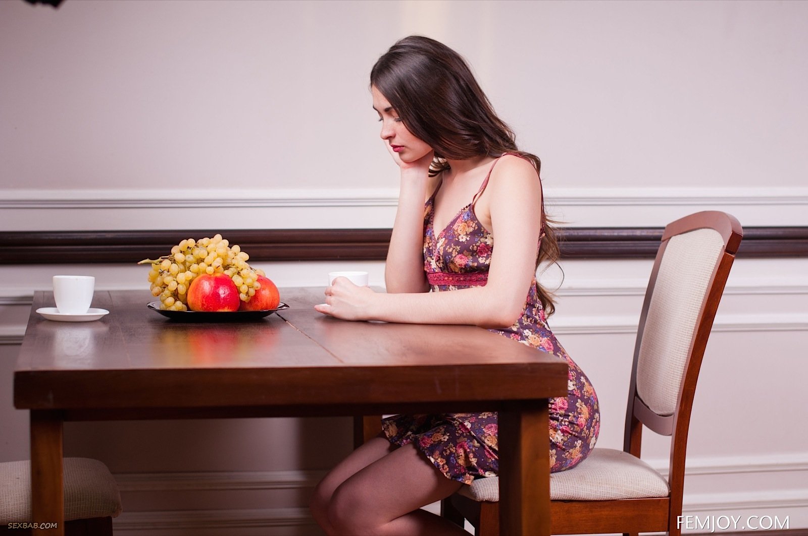 Описание: Устроившись на стуле за столом, молодая милашка с плоскими сиськами начинает эротично выгибаться в коротком платье, в будущем все же раздеваясь догола. Наслаждаясь, в дальнейшем раздетая стройняшка подробно засвечивает бритую письку и тощую возбуждающую попку.