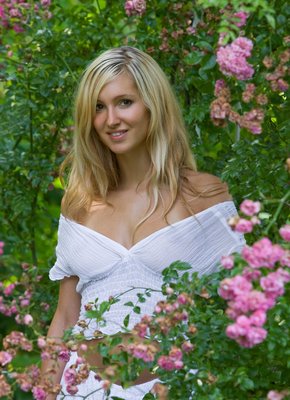 Девушка с шикарной грудью в саду