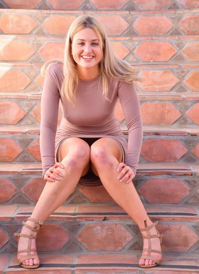 Описание: Озорная блондинка гуляет по городу в одном только платье на голом теле. Отыскав укромный уголок в тихом переулке, она снимает свой наряд и оказывается обнажённой. В столь откровенном виде перед нами появляются красивые титьки девушки и большая попа с аппетитными ягодицами. Кроме того, модель позволяет насладиться дурманящим видом её бритой киски.