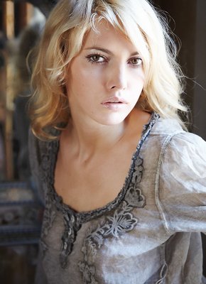 Элегантная светловолосая модель с бритой киской