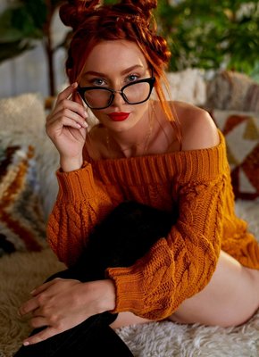 Описание: Устроившись на диване, рыженькая красавица в очках и чулках с наслаждением меняет разные ракурсы и мило улыбается. Изрядно возбудившись от происходящего в студии, стройная девушка в дальнейшем разделась и продемонстрировала маленькие сиськи, а спустившись на пол немного прогнулась раком и оттопырила попку.