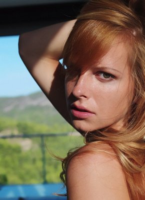 Описание: Устроив фото сессию в загородном доме, секси дамочка со светлыми волосами эротично позирует и медленно раздевается догола. Обнаженной милашка располагается на полу и поглаживая роскошные волосы руками, демонстрирует нам свои натуральные классные буфера с гладко выбритой писькой, а так же и другие прелести.