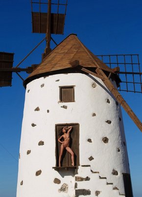 Описание: Объект страстного желания Дон Кихота - Дульсинея Тобосская, соблазняет своего рыцаря у мельницы, обнажая перед ним своё восхитительное тело. Симпатичная молодая девушка в откровенных позах демонстрирует самые потаённые и вожделенные свои прелести. Позволяет взглянуть на небольшую грудь и всё то, что обычно скрыто под юбкой.