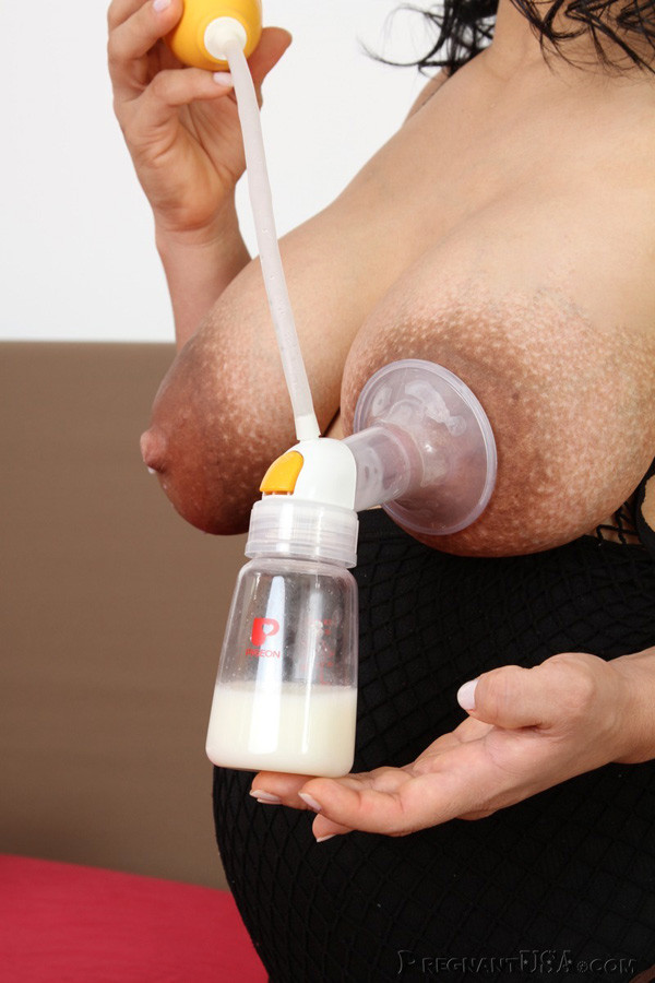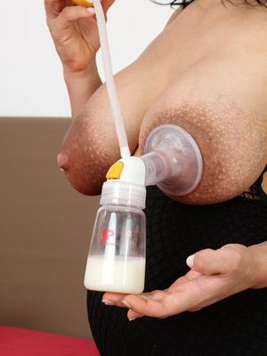 Латинка Сильвия доет свои необычные сиськи с молоком