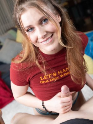 Голубоглазая девица трясет дойками, пока активно скачет у бойфренда на члене (15 фото)